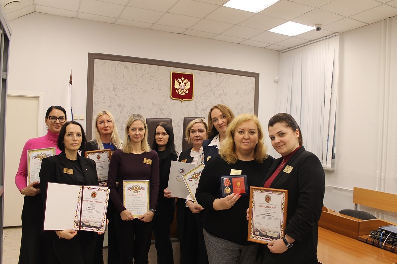 3 декабря 2024 года председатель Первомайского районного суда г. Мурманска Кутовская Н.А. поздравила коллектив суда с профессиональным праздником – Днем юриста, поблагодарила за профессионализм, честность и преданное служение долгу, большой личный вклад в развитие судебной системы, пожелала крепкого здоровья, отличного настроения, бодрости духа, успехов и оптимизма и вручила сотрудникам суда награды. За значительный личный вклад в развитие судебной системы, всестороннее содействие в укреплении и совершенствовании правосудия в Российской Федерации» Знаком отличия Судебного департамента при Верховном Суде Российской Федерации «За усердие» I степени награждена помощника судьи Первомайского районного суда г.Мурманска Петрова Ирина Рафаэловна. За добросовестное отношение к исполнению служебного долга, высокий профессионализм, укрепление авторитета судебной власти и в связи с празднованием Дня юриста Почётной грамотой Совета Судей Мурманской области награждены: - Кузьмина Оксана Ивановна, помощник судьи; - Ермак Наталья Александровна, помощник судьи. Благодарность Совета Судей Мурманской области объявлена: - Исаевой Анне Владимировне, помощнику судьи. - Пономаревой Алине Олеговне, старшему специалисту 1 разряда. Благодарность председателя Мурманского областного суда объявлена: - Желтовой Ольге Сергеевне, помощнику судьи; - Шумейко Татьяне Сергеевне, помощнику судьи; - Кузьминой Ольге Ивановне, старшему специалисту 1 разряда. Исполняющий обязанности заместителя председателя Первомайского районного суда г.Мурманска Пестерников М.В. вручил Почётные грамоты Мурманского регионального отделения Российского Объединения Судей: - Николаевой Елене Алексеевне, начальника отдела ИПОиК; - Миронову Юрию Михайловичу, водителю автомобиля. Пресс-служба